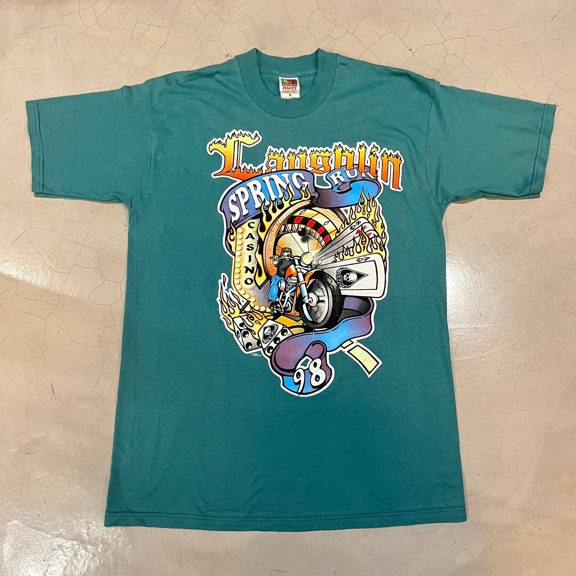 Vintage 1998 Laughlin Spring Run Biker Rally T-Shirt (Green)